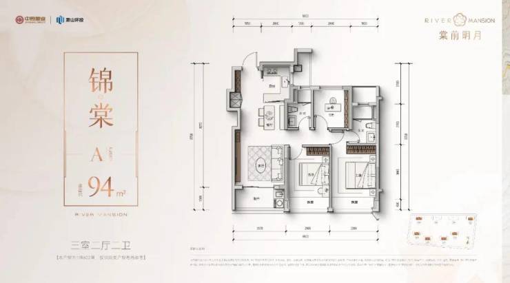 建面约94㎡三房,三开间朝南 + 1.5米进深阳台,玄关“深U空间”可嵌入双开门冰箱,小户型也能实现极致收纳;