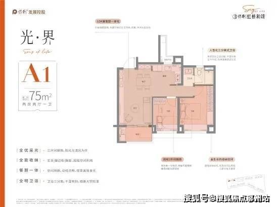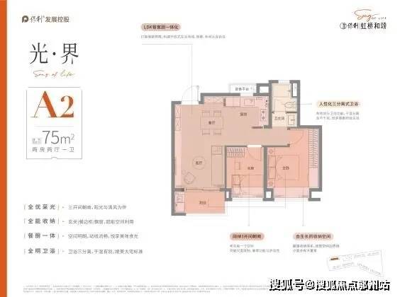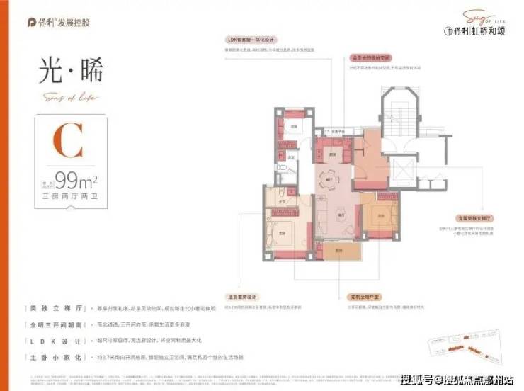 户型设计上,保利虹桥和颂,品质改善为出发点,设计“私属、至臻、尊崇”三大产品理念,臻奢建面约75㎡户型,三开间朝南,阳光与清风为伴,