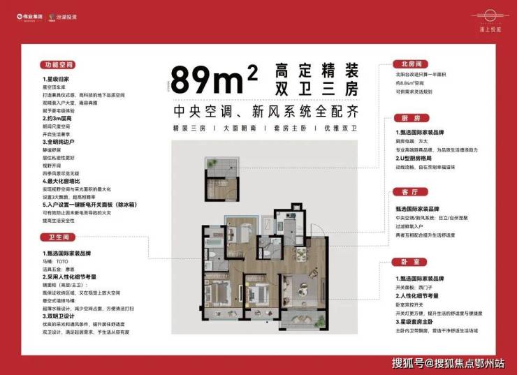 而少量的约89㎡户型更是做到了市场上罕见的双明卫三房,全部精装交付,配置了 中央空调+新风系统 ,是年轻置业人群的不错选择!