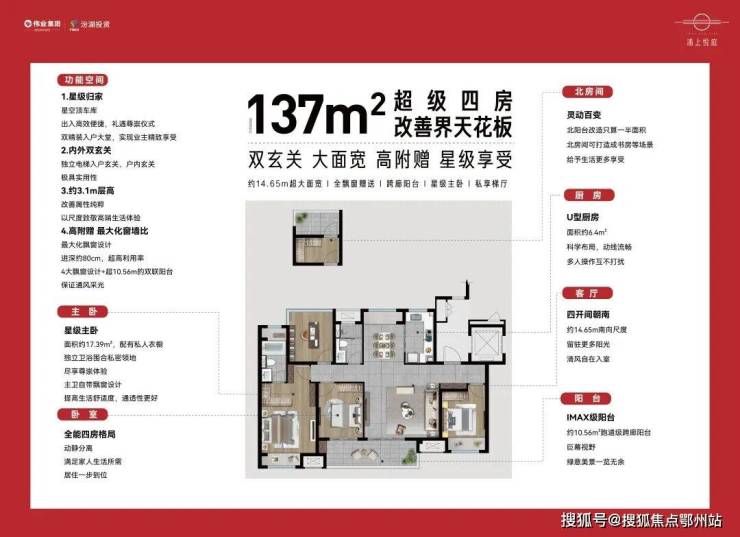 再来看看约137㎡王炸户型,可以说改善一步到位,有了它,这辈子都不需要换房~